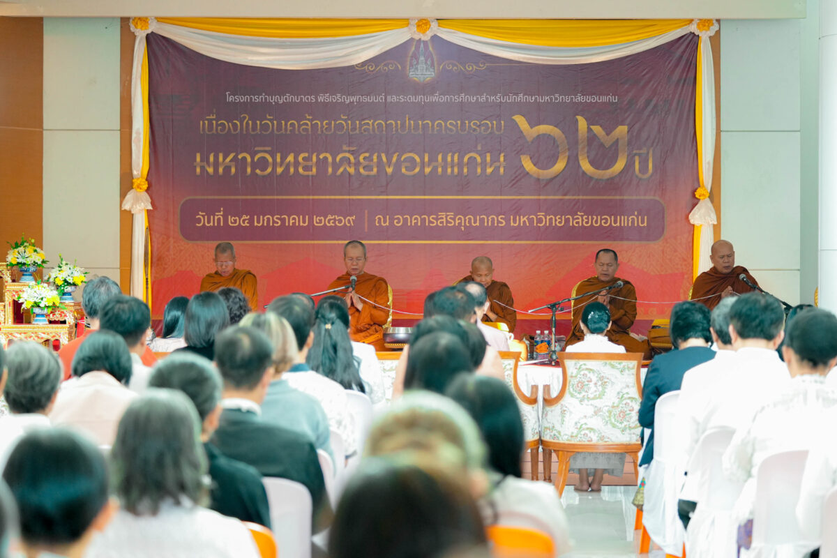 เมื่อวันที่ 25 มกราคม 2569 มหาวิทยาลัยขอนแก่น จัดกิจกรรมเฉลิมฉลองเนื่องในโอกาสวันคล้ายวันสถาปนามหาวิทยาลัย ครบรอบ 62 ปี โดยมีคณะผู้บริหาร คณาจารย์ บุคลากร ศิษย์เก่า และนักศึกษา เข้าร่วมพิธีทำบุญตักบาตรและเจริญพระพุทธมนต์ เพื่อความเป็นสิริมงคลในการก้าวสู่ทศวรรษใหม่ ณ อาคารสิริคุณากร มหาวิทยาลัยขอนแก่น