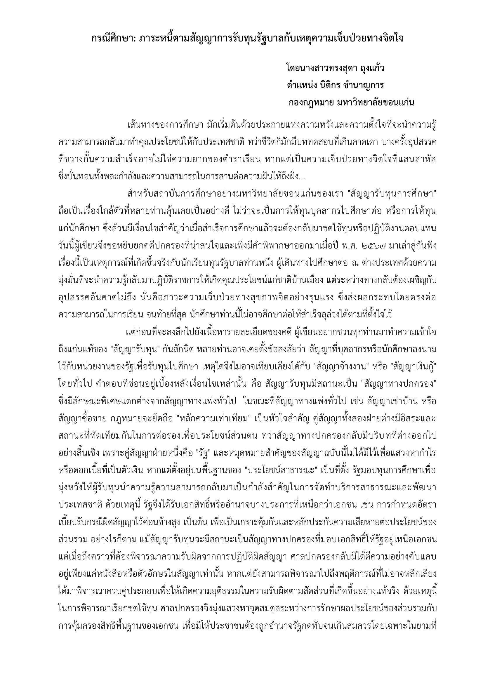 บทความทางกฎหมายUncategorized กรณีศึกษา ภาระหนี้ตามสัญญาการรับทุนรัฐบาลกับเหตุความเจ็บป่วยทางจิตใจ โดย Daranee Saengwong - February 26, 2026 0 8 Facebook Twitter Pinterest WhatsApp Post Views: 7