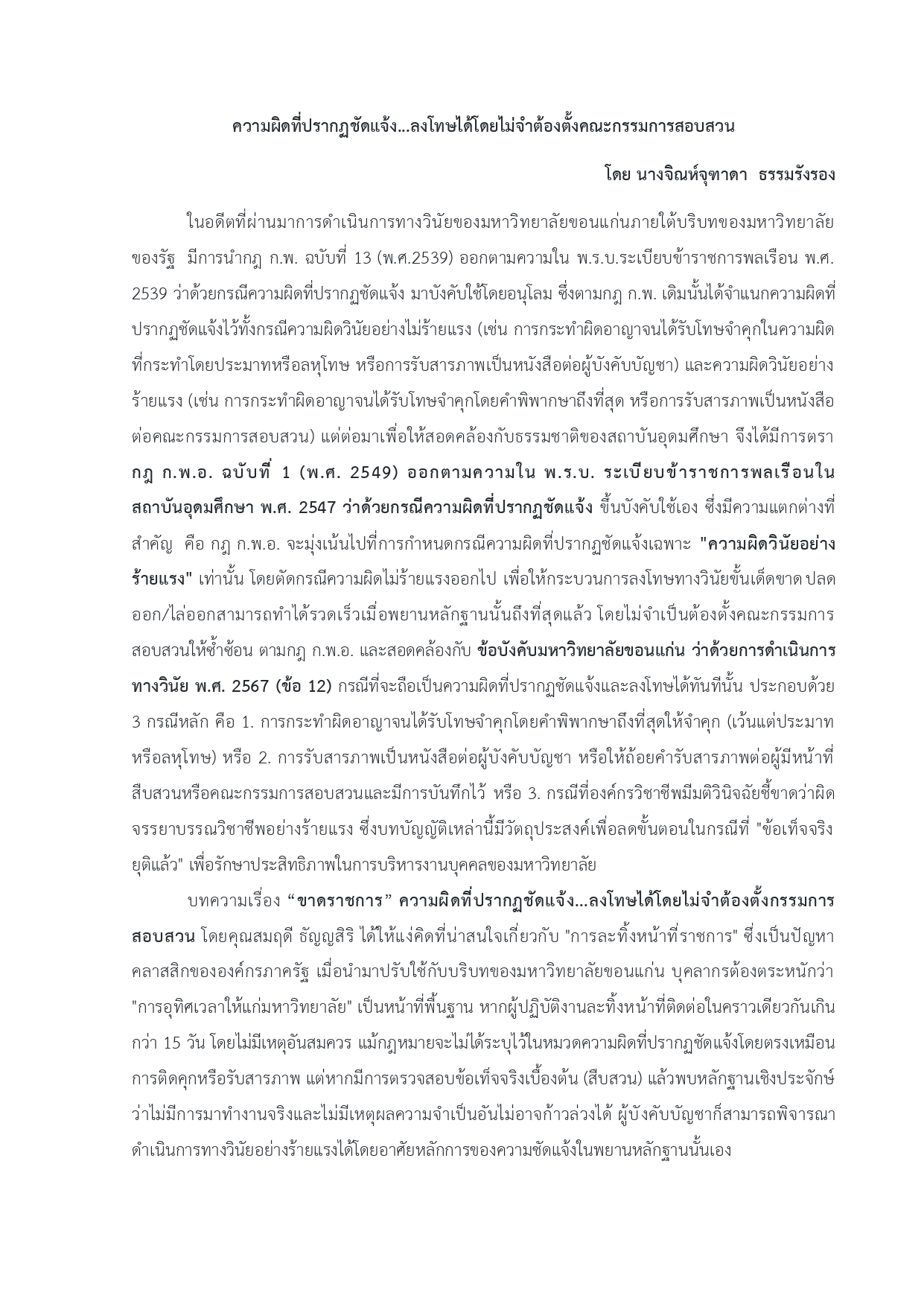 บทความทางกฎหมายUncategorized ความผิดที่ปรากฏชัดแจ้ง…ลงโทษได้โดยไม่จำต้องตั้งคณะกรรมการสอบสวน โดย Daranee Saengwong - March 24, 2026 0 25 Facebook Twitter Pinterest WhatsApp Post Views: 25