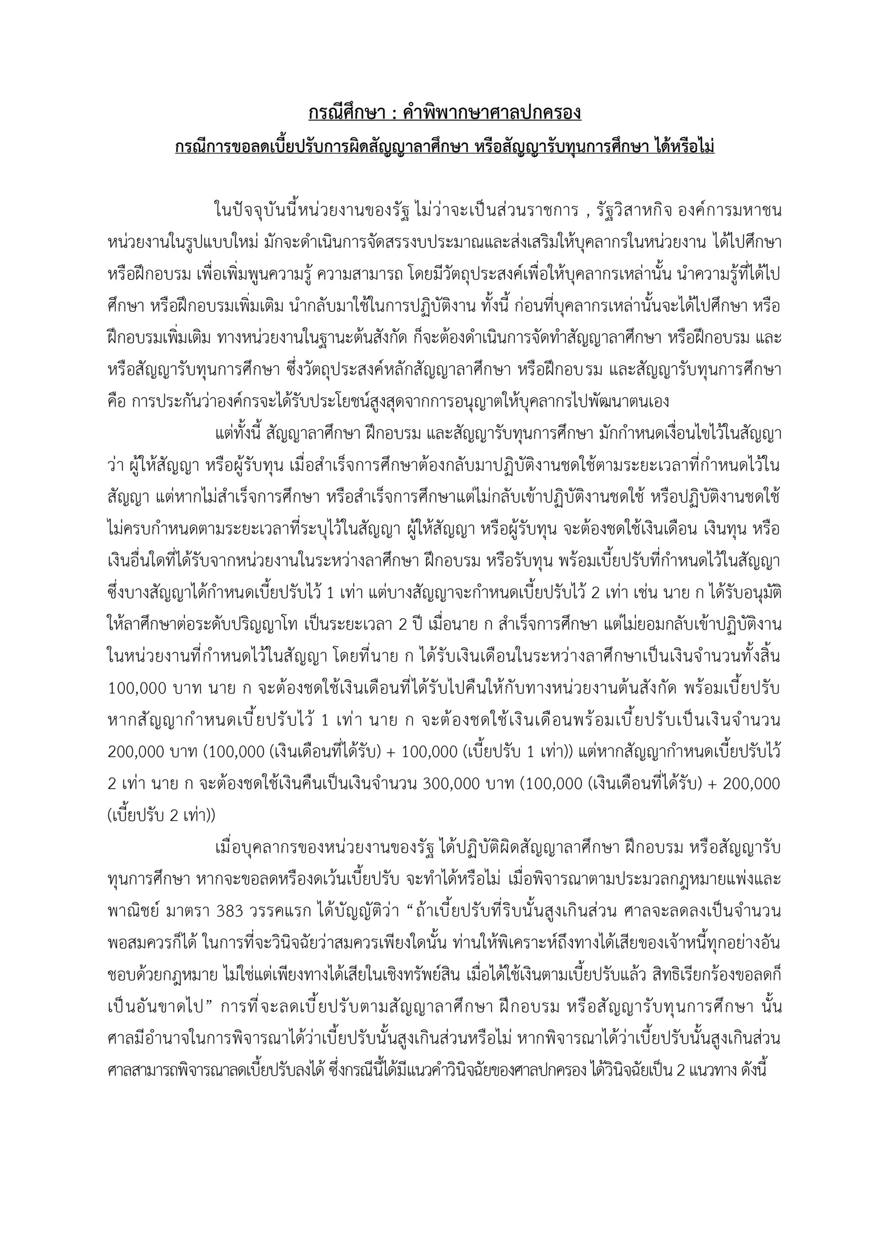 บทความทางกฎหมายUncategorized กรณีศึกษา : คำพิพากษาศาลปกครอง กรณีการขอลดเบี้ยปรับการผิดสัญญาลาศึกษา หรือสัญญารับทุนการศึกษา ได้หรือไม่ โดย Daranee Saengwong - April 27, 2026 0 4 Facebook Twitter Pinterest WhatsApp Post Views: 4