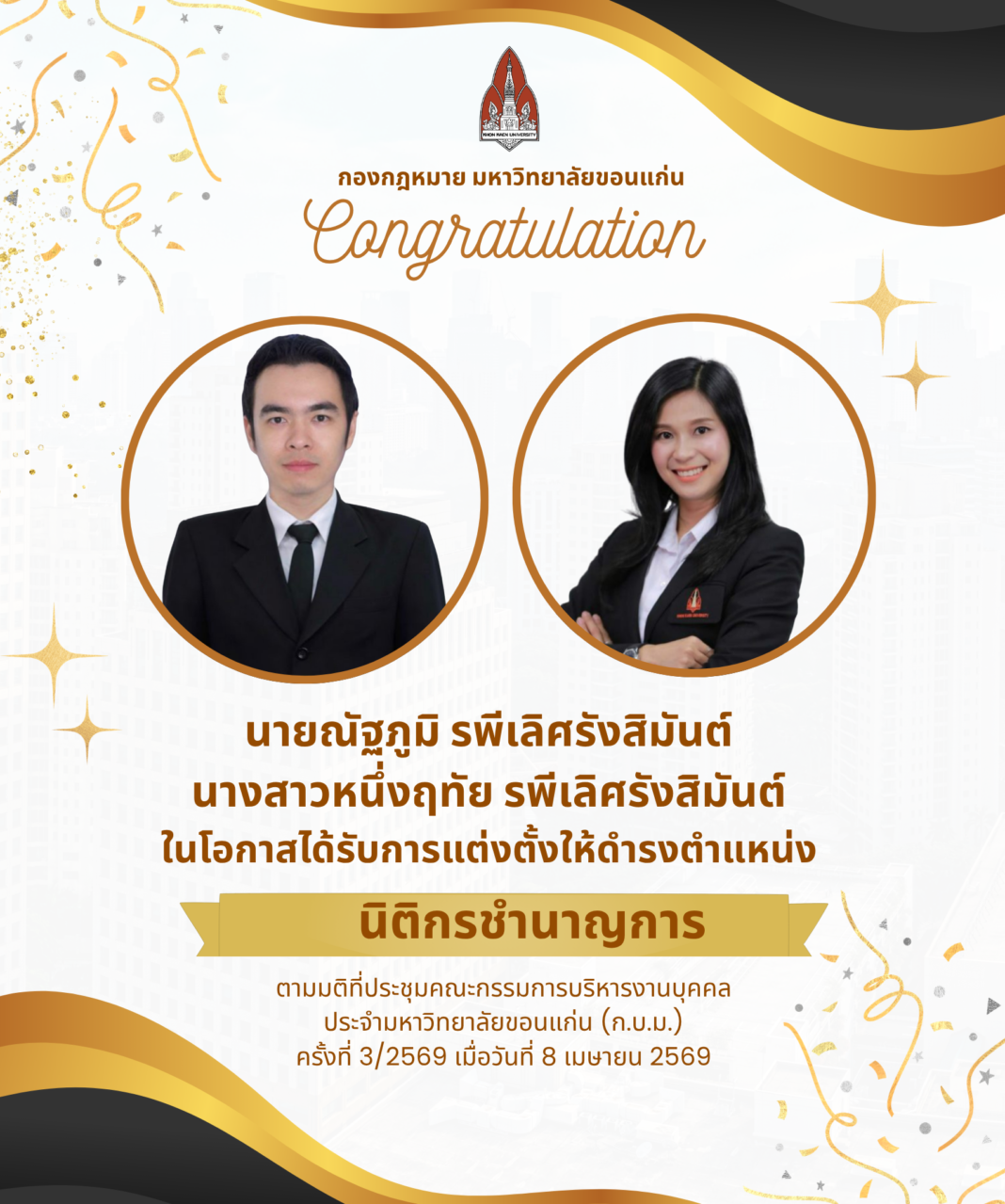 บทความUncategorized (Thai) ขอแสดงความยินดีกับบุคลากรกองกฎหมาย By Admin2 - April 9, 2026 0 18 Facebook Twitter Pinterest WhatsApp Post Views: 15 RELATED ARTICLESMORE FROM AUTHOR (Thai) กองกฎหมายร่วมขับเคลื่อนยุทธศาสตร์ มหาวิทยาลัยขอนแก่น จัดโครงการอบรม ITA ถ่ายทอดเกณฑ์ประเมินใหม่ทั้งระบบ พร้อมเปิดเวทีแลกเปลี่ยนเรียนรู้ เสริมศักยภาพบุคลากรทุกระดับ ยกระดับองค์กรสู่ความโปร่งใสและตรวจสอบได้ University Employees Committing Serious Drug-Related Offenses Face Triple Penalties (Thai) ความผิดที่ปรากฏชัดแจ้ง…ลงโทษได้โดยไม่จำต้องตั้งคณะกรรมการสอบสวน (Thai) ขอแสดงความยินดีกับบุคลากรกองกฎหมาย A case study – Corruption of Advance Payment