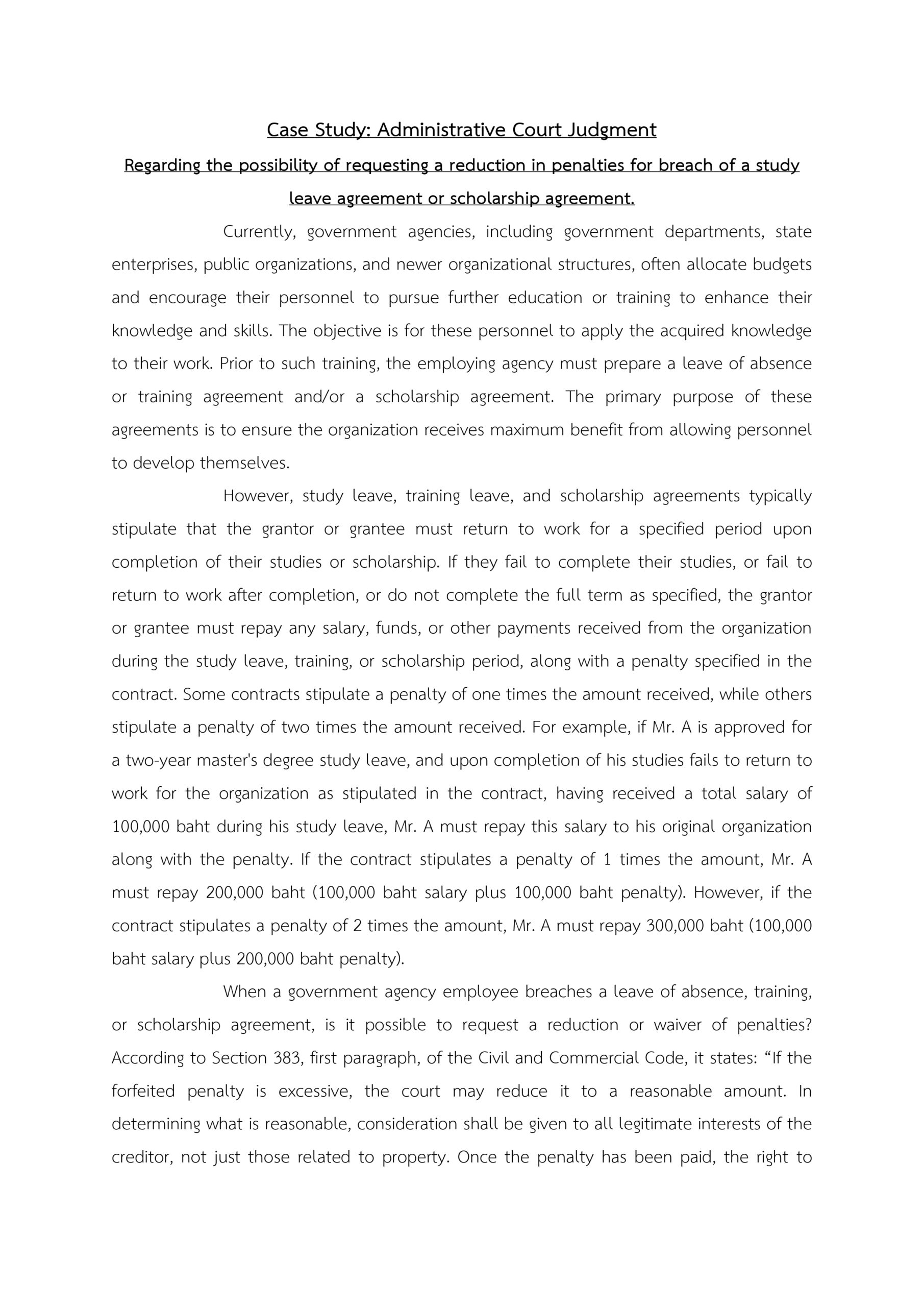 บทความUncategorized Case Study: Administrative Court Judgment Regarding the possibility of requesting a reduction in penalties for breach of a study leave agreement or scholarship agreement By Daranee Saengwong - April 27, 2026 0 15 Facebook Twitter Pinterest WhatsApp Post Views: 15